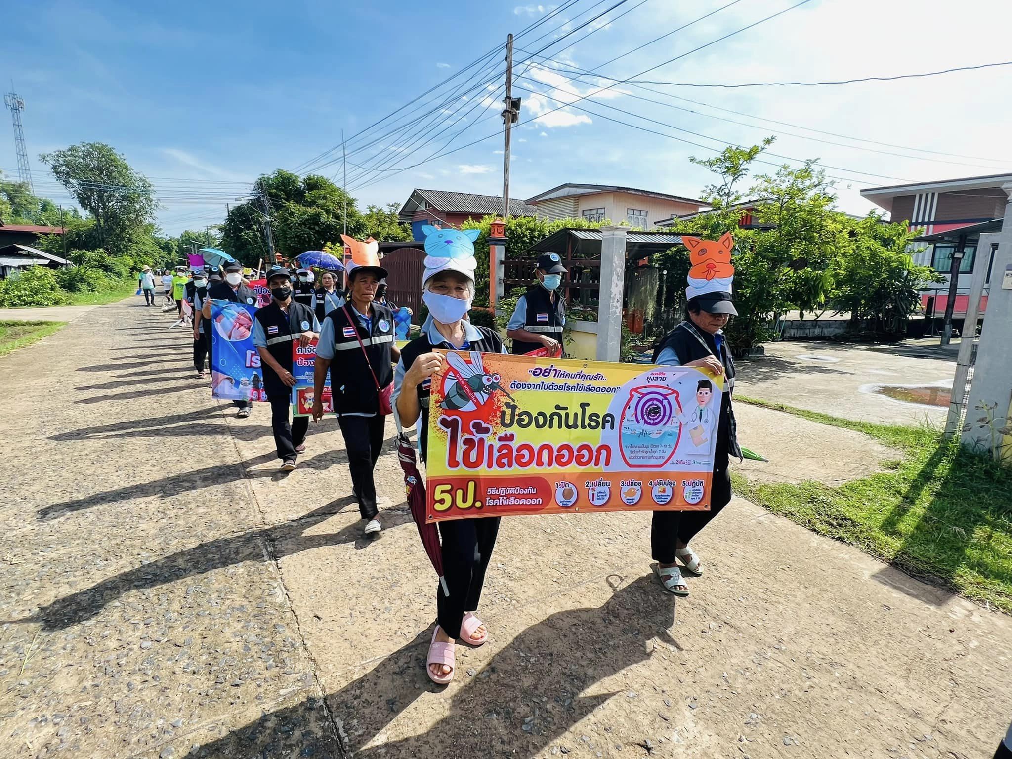 จัดกิจกรรม การเดินรณรงค์ 1.การรณรงค์ป้องกันและควบคุมไข้เลือดออก 2.การรณรงค์วันต่อต้านยาเสพติด 3.การรณรงค์ ป้องกันและควบคุมโรคเอสด์ 4.การรณรงค์ป้องกันโรคพิษสุนัขบ้า 5.การรณรงค์ป้องกันและควบคุมโรคขาดสารไอโอดีน