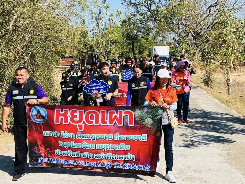 เทศบาลตำบลมะอึจัดกิจกรรมเดินรณรงค์ประชาสัมพันธ์ การป้องกันและแก้ไขปัญหาไฟป่าหมอกควัน และฝุ่นละอองขนาดเล็ก (PM2.5)