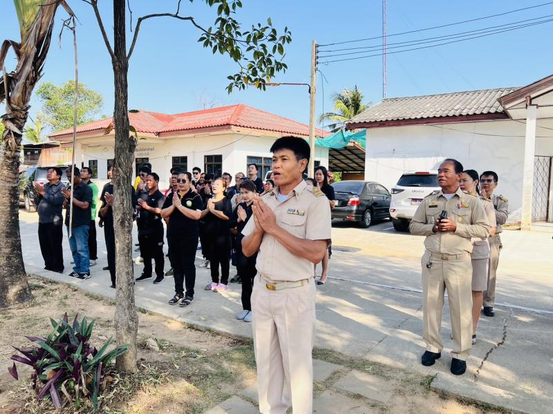 description กิจกรรมเข้าแถวเคารพธงชาติ เทศบาลตำบลมะอึ วันจันทร์ที่ 16 มีนาคม 2569 นายเชษฐา เวียงสิมา นายกเทศมนตรีตำบลมะอึ มอบหมายให้ นายสุรเชษฐ์ จตุเทน รองนายกเทศมนตรีตำบลมะอึ พร้อมด้วยคณะบริหาร ปลัดเทศบาล หัวหน้าส่วน หัวหน้าฝ่าย พนักงานเทศบาล และพนักงานจ้าง เข้าแถวเคารพธงชาติ ไหว้พระสวดมนต์ เพื่อเป็นข้าราชการที่ดี บริเวณหน้าเสาธง ณ สำนักงานเทศบาลตำบลมะอึ เวลา 08.40 น. ทั้งนี้ เพื่อเสริมสร้างคุณธรรม จริยธรรม ความรักสามัคคี ระเบียบวินัย person admin