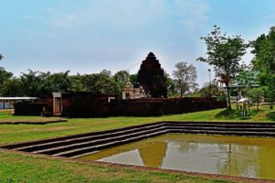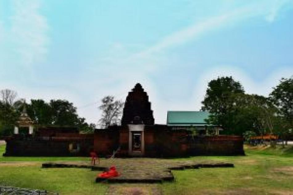 สร้างด้วยศิลาแลง มีลักษณะเป็นกลุ่มอาคารที่มี ลักษณะแบบเดียว กับอาคารที่เชื่อกันว่า คืออโรคยาศาลตามที่ปรากฏในจารึกปราสาทตาพรหมอันประกอบด้วย ปรางค์ประธาน บรรณาลัย กำแพง พร้อมซุ้มประตูและสระน้ำนอกกำแพง โดยทั่วไปนับว่าคงสภาพเดิมพอควร โดยเฉพาะปรางค์ประธานชั้นหลังคาคงเหลือ 3 ชั้น และมีฐานบัวยอดปรางค์อยู่ตอนบน อาคารอื่นๆ แม้หักพังแต่ทางวัดก็ได้จัดบริเวณให้ดูร่มรื่นสะอาดตา