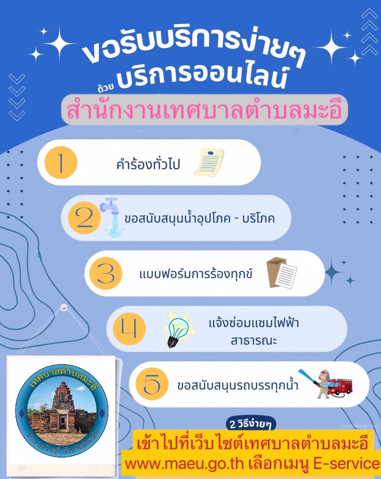 ประชาสัมพันธ์ระบบการให้บริการผ่านช่องทาง ออนไลน์ (E-Service) ทางเว็บไซต์หน่วยงานเทศบาลตำบลมะอึ